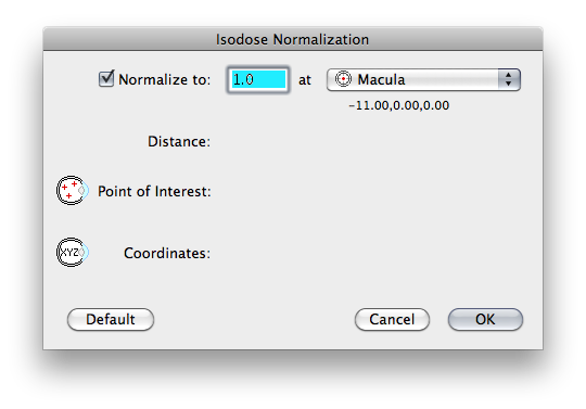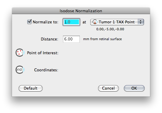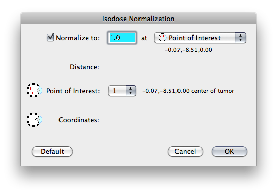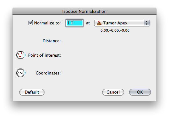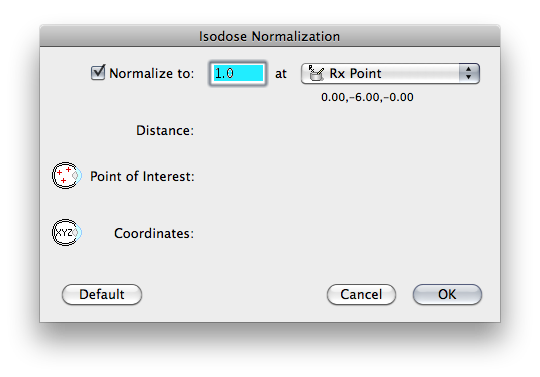 - From the popup menu, select a point at which to normalize the isodose plots.