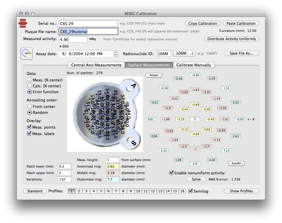 In this section of the tutorial we will modify the initial PS model that assumed a uniform distribution of patch-source strength over the surface of the plaque to instead create a nonuniform distribution of source strength which better reproduces the near-surface measurements provided on BEBIG protocol sheet 2.
