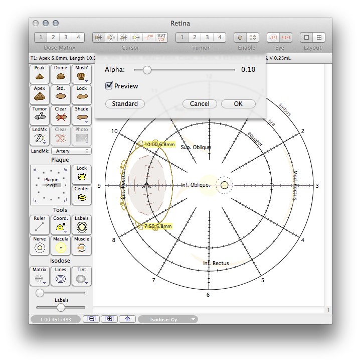 - Custom... - Opens the custom shading sheet which offers finer control of the tumor translucency (alpha) parameter. Useful when preparing figures for publication.