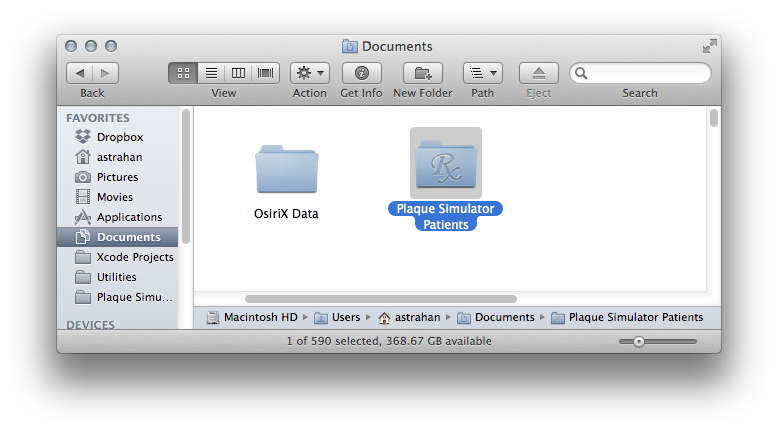 To share patient data folders, plans and tutorials between OSX users, you may configure each OSX user's Plaque Simulator Patient folder preference setting to share a common Plaque Simulator Patients folder located on a shared local or remote storage location. Note, however, that this will weaken patient data security.