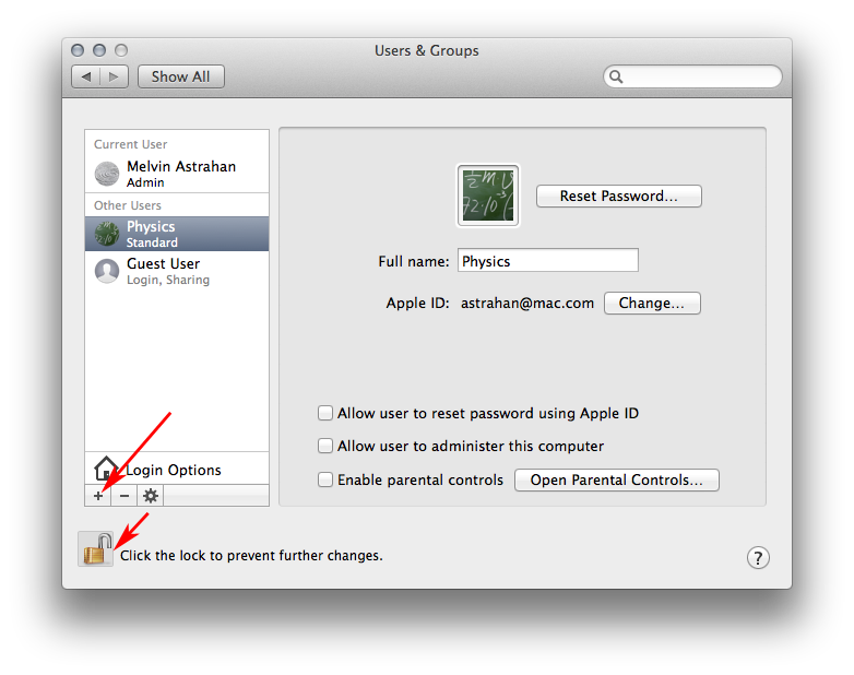 To create additional OSX users in addition to the default administrator, select System Preferences... from the Apple menu on the left of the menu bar along the top of the main screen. In the System Preferences... window: