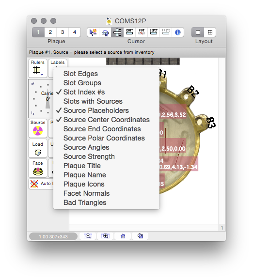 The Plaque document is a great way to print hardcopy templates of seed coordinates. In the plaque loading window, configure the labels to show the coordinates and then print the document.